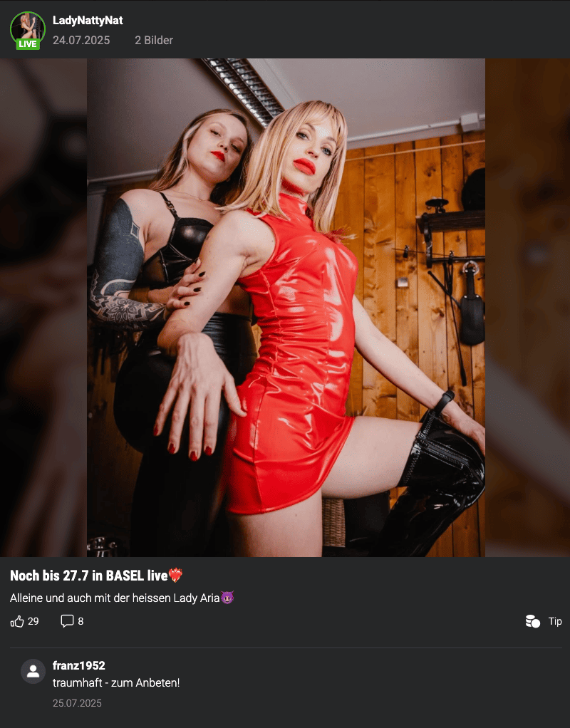 Ich war das erste Mal als Sklave bei Domina LadyNattyNat ich muss zugeben ich bin blutiger Anfänger. Ich wollte pure Erziehung genießen. Die Erfahrung mit ihr war mehr als befriedigend. Sie hat mich total überzeugt und ich werde meiner Herrin weiterhin dienen. Es war auch mein allererstes Mal, dass ich Camsex ausprobiert habe. Es gefällt mir sehr und macht mir Spaß.