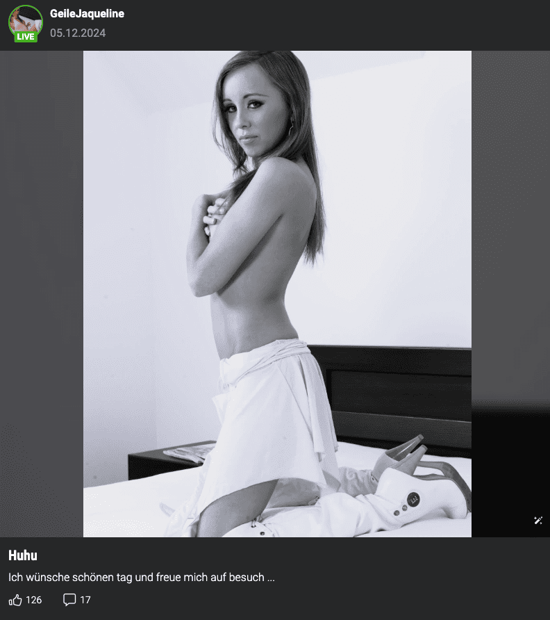 đ Wenn ihr auf Milf-Action mit einer Mischung aus Erfahrung, Spieltrieb und richtig geilen Outfits steht â dann gönnt euch GeileJaqueline. Sie bringt dieses âIch bin versaut, aber ich kontrolliere dichâ-Feeling, das du bei vielen jungen Camgirls nie bekommst.