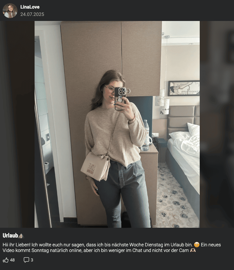 Ich empfehle LinaLove jedem, der Bock auf echtes Kopfkino und einen verdammt geilen Live-Sexchat hat. Sie ist nicht nur heiß, sondern zieht dich komplett in ihre Welt rein.