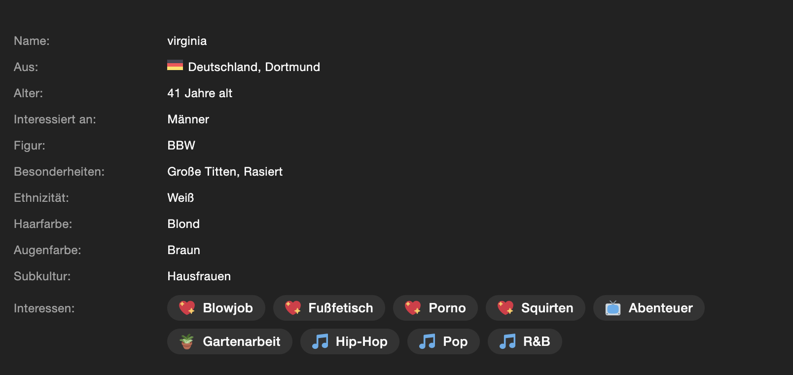 Dieses Profil hat zusätzliche Bilder und eine private Handynummer hinterlegt. Um Fakes zu vermeiden, ist dieser Kontakt nur über unser verifiziertes Partnerportal erreichbar.