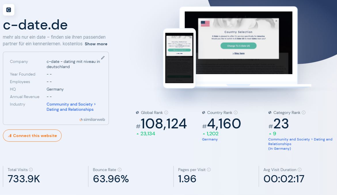 C-Date.de ist also eine reines Sex-Portal für Menschen die nach einem schnellen, unverbindlichen Abenteuer suchen. Werfen wir doch mal einen Blick auf die aktuellen Besucherzahlen der Seite, um zu erfahren, wie viele Personen suchen eigentlich, nach einem Sextreffen in Deutschland, Österreich oder Schweiz?